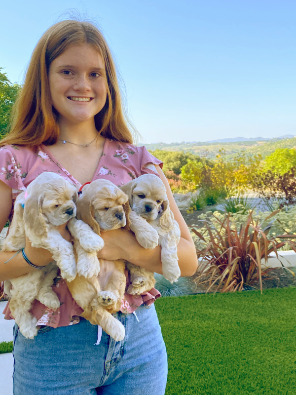 “After 6 months of searching for a responsible, reputable Cocker breeder we feel extremely blessed to have found Kailynn at Cutin Blue Farms. Kailynn’s knowledge, advice, and love of her dogs is amazing. As is her consistency to always be available to answer any question or concern we may have had when first bringing Finley home. I could Never Thank Kailynn or her family enough for there responsible breeding of the most beautiful, smart, amazing and funnest Cocker we have ever had!!( Finley is #3) Finley is an Absolute Joy and the LOVE of our entire family! We are very excited to be getting our second Cocker from Kailynn this fall and know he will be Nothing short of AMAZING” — Nancy